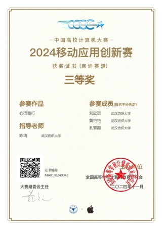其中由伟德国际1946bv官网陈琦老师指导的心语童行团队经过了初赛、复赛、决赛三个阶段,在移动应用创新赛中荣获全国三等奖。《心语童行》是一款针对语言障碍儿童的康复训练APP,旨在从身体到心理层面对语言障碍儿童进行帮助与关怀。该APP内容分为三大板块,分别为学说话、擅表达和提认知。软件通过实时数据反馈,切实解决语言障碍儿童的发音问题,帮助他们更好地学习和生活。