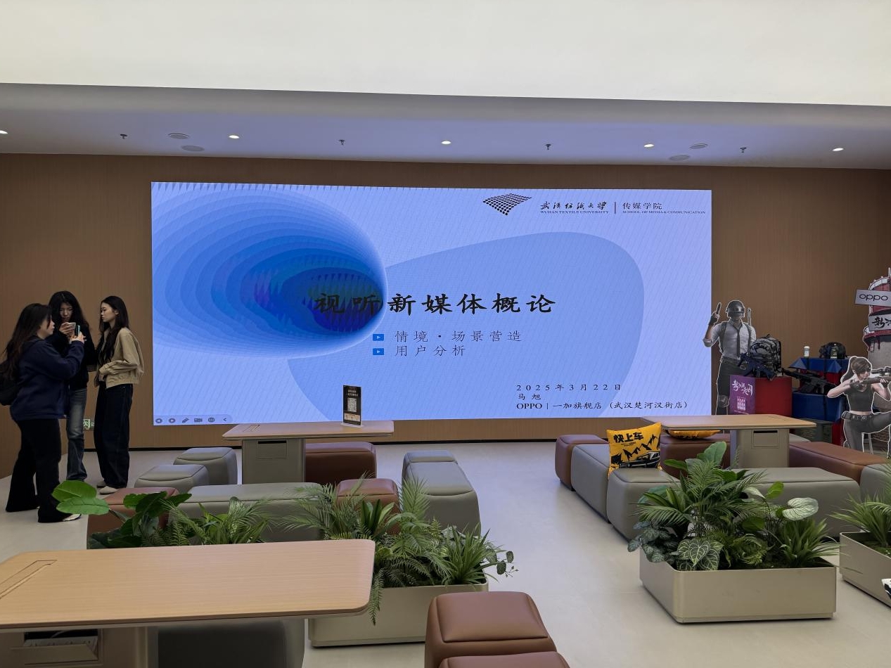 为推动研究生课堂教学形式的多样化,将理论与实际紧密结合,提升专业素养与创新能力,3月22日上午,伟德国际1946bv官网青年博士马旭老师带领2024级新闻与传播专业的研究生团队,走进位于楚河汉街的华中地区首家“OPPO 一加旗舰店”,将《视听新媒体概论》课堂延伸至商业一线。此次教学活动以“移动场景时代的场景搭建与用户分析”为主题,通过“实地观察+理论解析+创意实践”的立体化教学模式,探索新时代新闻传播学教育改革的实践路径。