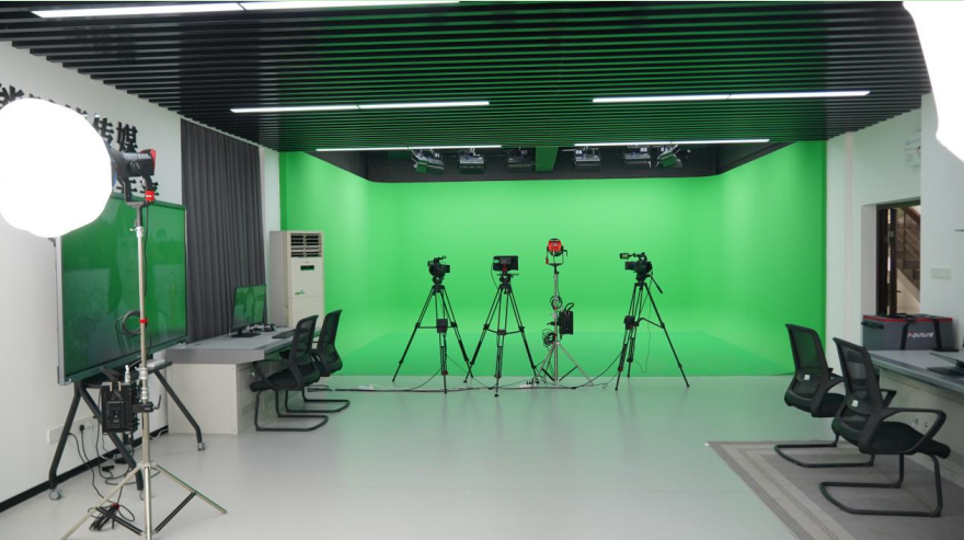 新建的AI数字人虚拟演播实验室分为动作捕捉区、绿幕合成虚拟演播区和AI数据处理区三部分,总面积约为102.47平方米,动作捕捉区是利用动捕技术采集人体运动数据和面部数据的区域,放置动捕系统、三维图像采集系统、数字投影机、电脑工作站。绿幕合成虚拟演播区是利用绿幕抠像,实现虚拟数字场景与实景相融合的演播展示及录制区域。AI数据处理区主要是利用高性能计算机进行AI训练及数据分析、生成、渲染,放置二维训练平台、人工智能工作站,以便实验人员进行虚拟场景、虚拟人物合成、AI训练模拟。