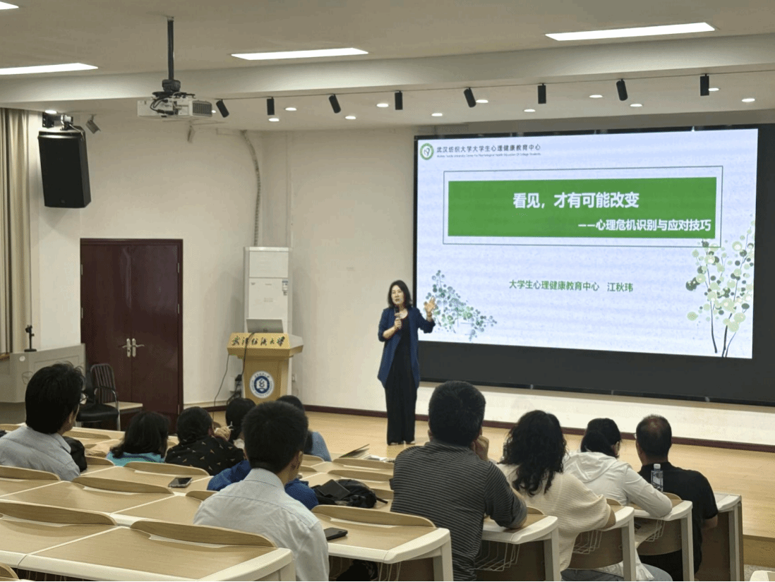 心理危机干预的关键在于‘早发现’,而发现的前提是‘真正看见’”。江秋玮以《看见,才有可能改变》为题,围绕心理危机干预过程中“识、问、联”三大核心技能,以实际案例导入,说明日常教学、培养过程中,心理危机信号识别的重要性和紧迫性,解读如何通过观察学业状态、外在表现、言谈举止等,更快地察觉异常表征,了解心理困扰。江秋玮强调,任课教师是心理支持联动网络的重要一环,需客观、及时地将行为预警信号反馈给学工团队,形成心理危机干预联动合力;在课堂、组会中对学生多一份关心、多一声鼓励,减轻学生内在压力,提升心理效能。