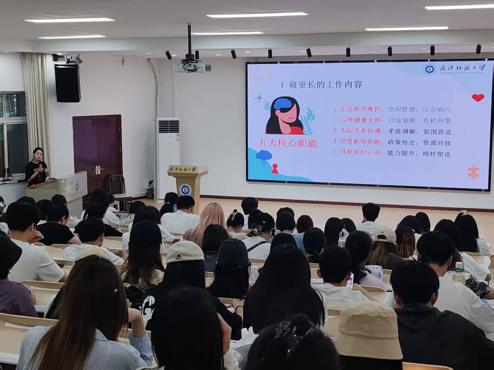 辅导员王然作寝室长护航能力提升培训讲座,解读了寝室长工作职责,进一步明确了寝室长工作定位,提升了寝室长工作技能。她通过情模拟模、角色扮演等互动形式开展实务培训,系统讲解了观察与倾听、识别与应对、报告与陪伴以及自我关照等工作方式方法,引导寝室长做好朋辈支持者、沟通信息员和危机预警哨兵等多重角色,指导寝室长在助人实践中提升共情能力和沟通技巧,并在帮助他人的同时实现自我成长。