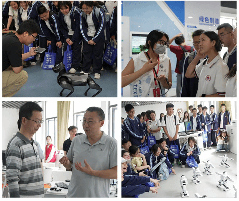在纺织科技馆,师生们仔细观看每一个版块,不时拿出手机拍照定格。讲解员结合实物展品,将纺织科技与爱国主义教育有机融合,让中学生们在纺织的历史、科技及文化中厚植家国情怀。在计算机与人工智能实验室,随着机器狗一个帅气的动作,身着校服的少年们像被磁石吸引般围成圆圈。“快看!它听得懂指令!”此起彼伏的欢呼声中,科技的魅力在年轻脸庞上展现的淋漓尽致。