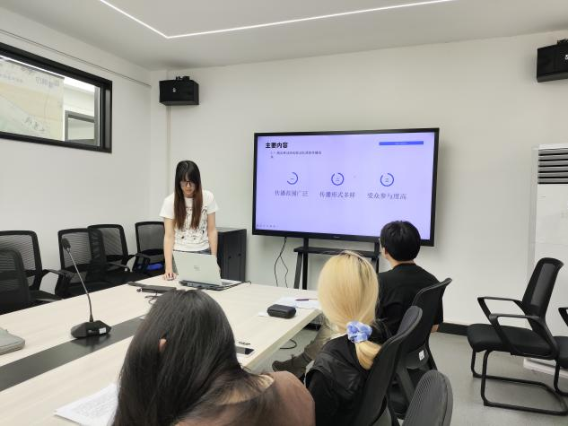 广告学12101班姚行怡同学率先分享,其论文《“她经济”浪潮中乙女游戏陪伴系统、情感满足与玩家消费行为的关系探究——以<恋与深空>为例》,深入探讨了女性向游戏中情感机制对消费的驱动作用,揭示了数字娱乐消费的新趋势。广告学12101班付思涵同学聚焦文化传承新路径,其论文《游戏与非遗联动传播的路径与策略研究——以腾讯移动游戏为例》,深入分析了数字游戏作为媒介在活化非物质文化遗产方面的潜力与实践策略。广告学12101班舒晓庆同学最后分享,其论文《国际奢侈品牌运用中国刺绣元素提升品牌价值的多维度分析》,从品牌战略高度解析了中国传统工艺元素在全球奢侈品市场中的价值提升作用与多维实践。