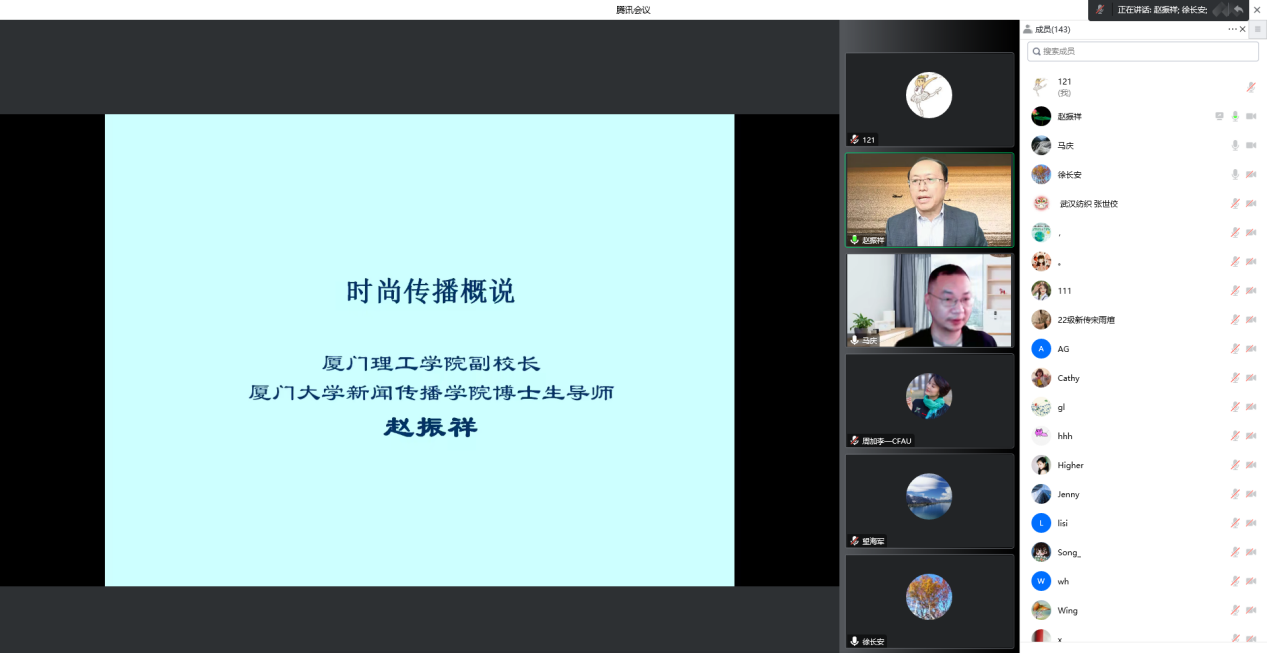 讲座最后,赵振祥教授结合当下新媒体环境、疫情环境,提出对时尚传播现状和发展的分析与思考,并探析如何实现时尚传播的跨界融合。他指出:“时尚传播是文化传播的重要推力,要让中国文化搭上时尚传播的快车。”赵振祥教授向全体师生发出号召:“让我们共同努力,让中国文化变得时尚起来!”整场讲座深入浅出,内容详实,赢得了全体师生的一致好评。