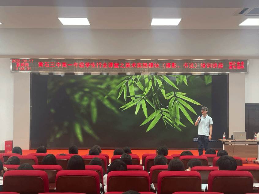 讲座在该校学术报告厅开启。该校德体卫艺处副主任郭晟对牛学教授的到访表示热烈欢迎。牛学教授以国家级精品课程《摄影基础》为依托,通过"三分法构图中的教学楼""引导线视角下的林荫道"等生动案例,引导同学们用镜头发现校园建筑与自然景观中的美学密码。牛学教授讲座中提到,"教育的意义不在于培养专业艺术家,而在于培育懂得欣赏美、创造美的生活家。"而摄影可以将技巧与书法艺术相结合,通过光影变化、线条布局展现校园人文底蕴。现场互动热烈。