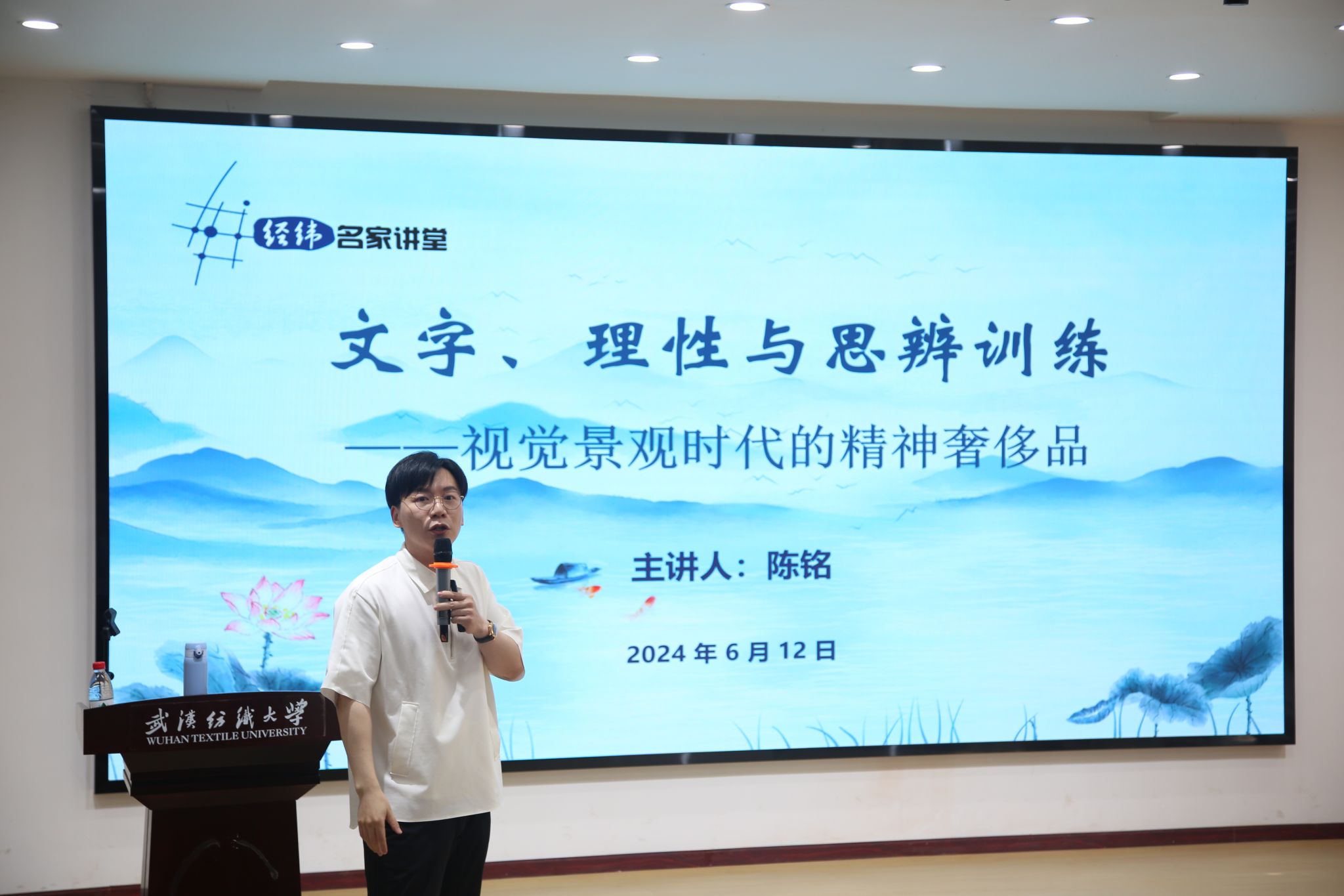 6月12日,武汉大学新闻与传播学院教师、2012年湖北省“五四青年奖章”获得者陈铭博士做客bevictor伟德官网入口第10期经纬名家讲堂暨第643期阳光论坛,在南湖校区“一站式”学生社区“青春会客厅”与师生畅谈视觉景观时代的精神奢侈品:文字、理性与思辨能力训练。学校师生代表两百余人参加讲堂,讲堂由伟德国际1946bv官网副院长马庆主持。