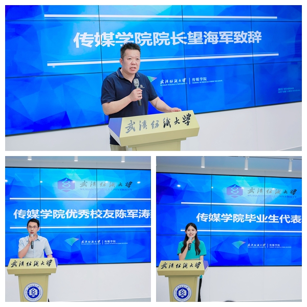 湖北文旅集团战略发展与投资部副总经理2003级校友陈军涛作为校友代表对2025届毕业生圆满收官表示祝贺。他感慨时代飞轮疾转,学弟学妹的毕设作品已勇立潮头,相信在多学科融合背景下,同学们的前景无限宽广。他勉励学弟学妹走向社会后,秉承校训,做“自信而无所畏惧,谦逊而有所敬畏”堪担大任的纺大人。